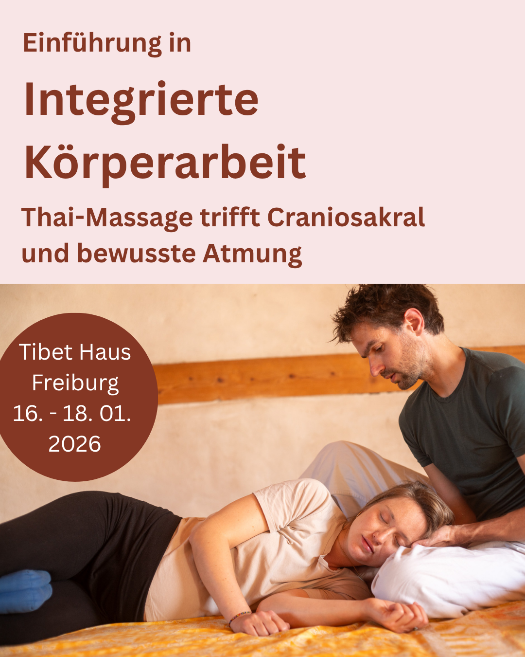 In diesem Workshop entdecken Teilnehmende erste Prinzipien und Techniken der Thai-Massage. Mühelos, effektiv und aus der eigenen Entspannung und Körpermitte heraus, geben und empfangen Teilnehmende eine kleine Massage-Sequenz.